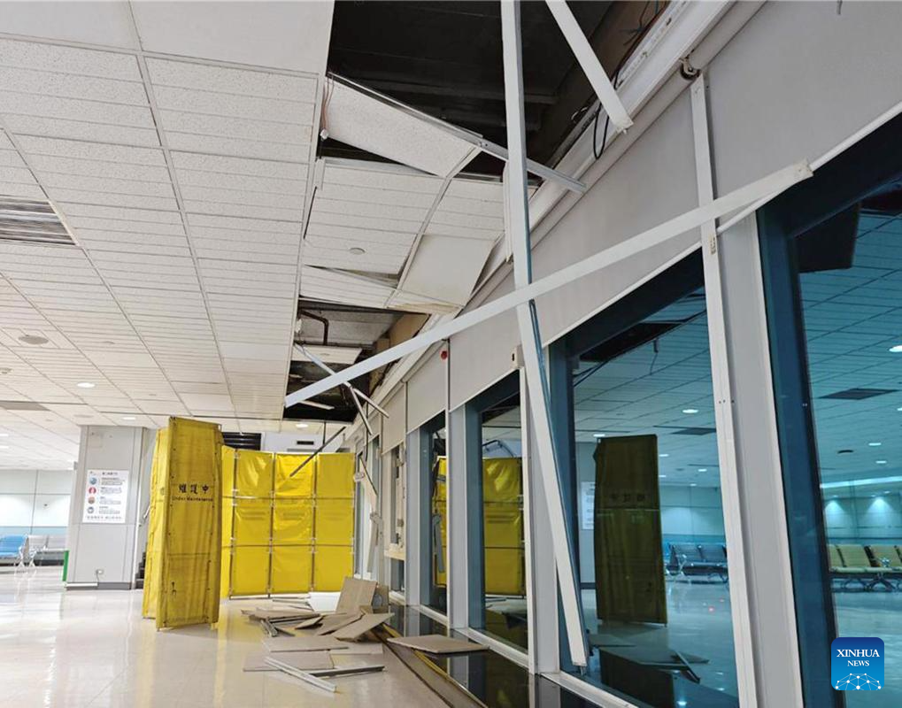 Part of the ceiling collapses after an earthquake at Taoyuan International Airport, southeast China's Taiwan, Dec. 27, 2025.