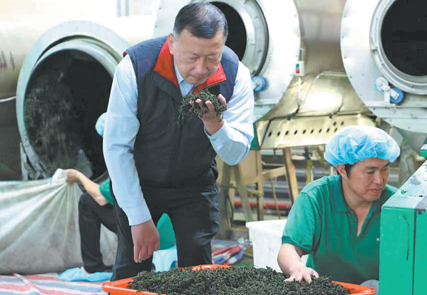 Lee Chih-hung sniffs the fragrance of tea at his production base in Yongfu, Fujian province. CHINA DAILY