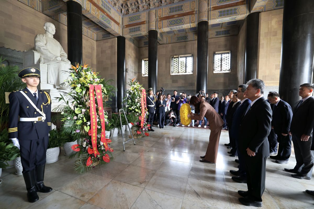 KMT chairwoman pays homage to Sun Yat-sen Mausoleum in Nanjing