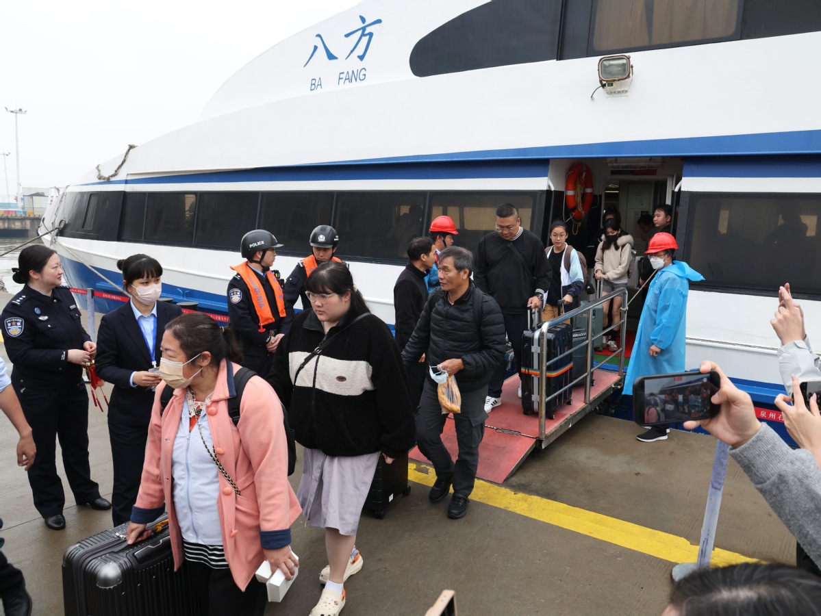 Passengers disembark from a ferry on the Quanzhou–Jinmen "Mini Three Links" route at the Quanzhou-Jinmen passenger terminal in Quanzhou, Fujian province, on April 3, 2026. JIANG KEHONG/XINHUA