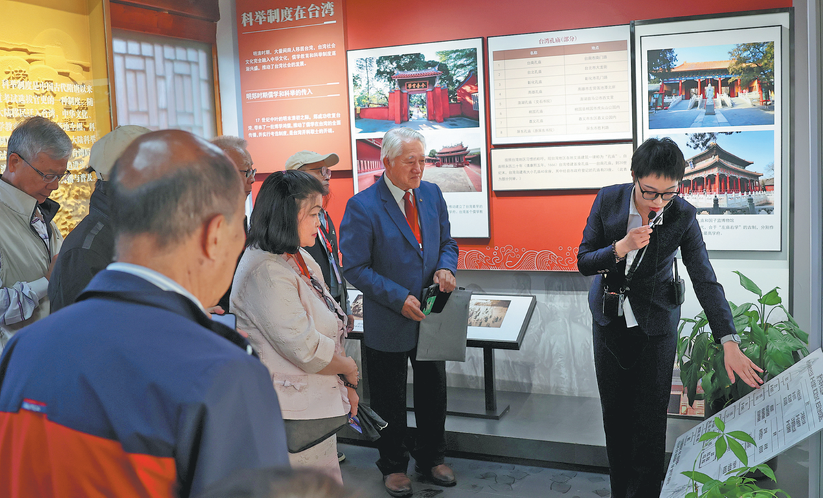A tour guide introduces an exhibition to guests attending the seventh forum of social groups of Taiwan compatriots at the Taiwan Guild Hall in Beijing last week. WANG ZHUANGFEI/CHINA DAILY